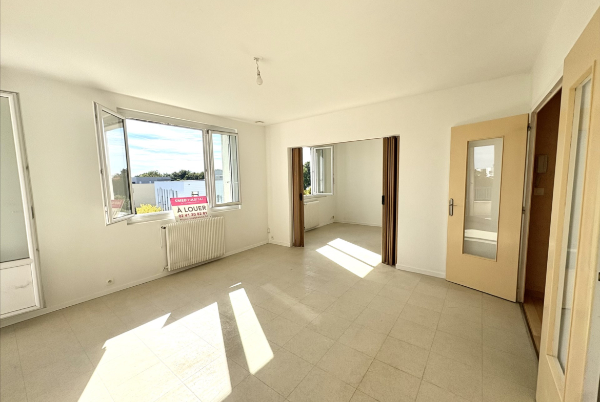 Appartement de 3 pièces situé rue de la Barre à Angers au 3eme étage. L’appartement comprend une grande pièce de vie, une cuisine séparée, 2 chambres ainsi qu’une salle d’eau et un WC séparé.