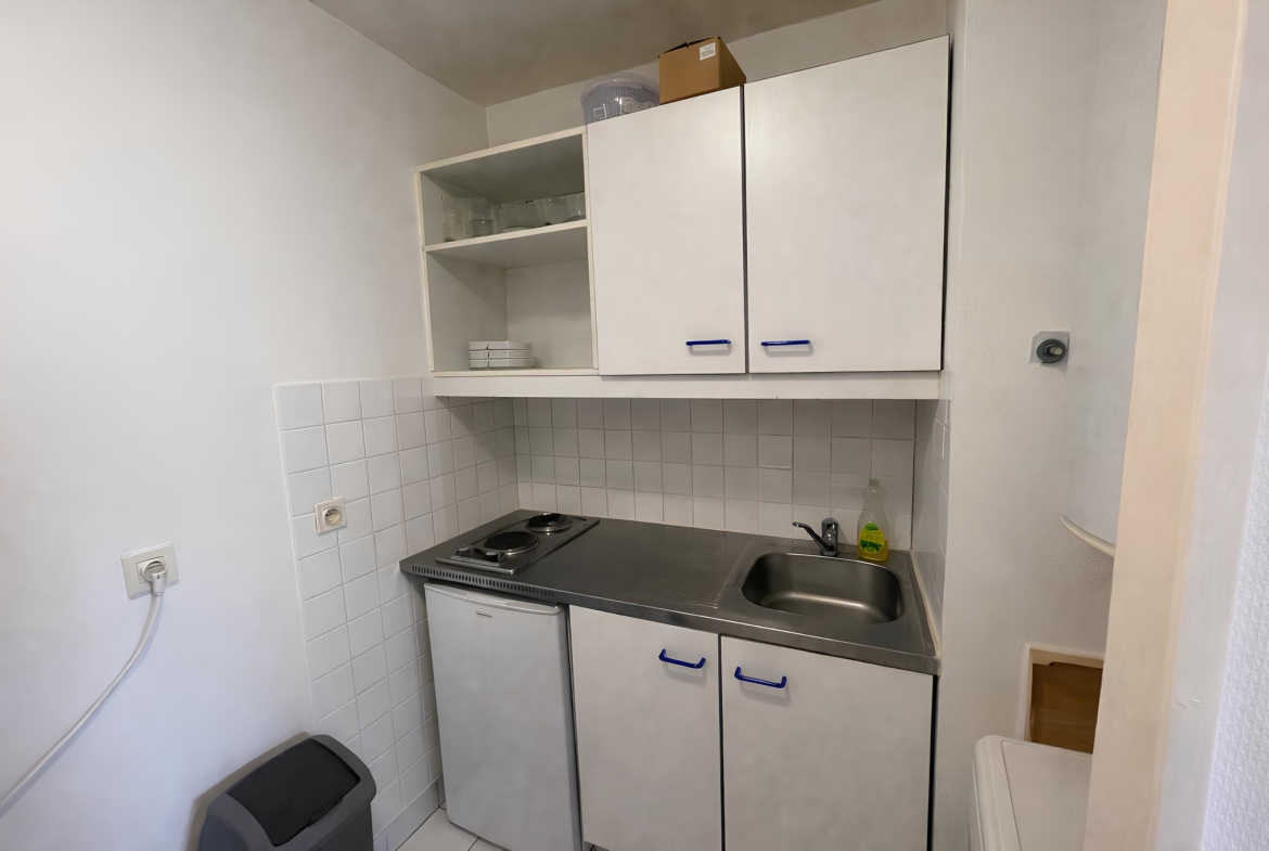 Ce bien situé au rez de chaussé, comprend une entrée avec placard de rangement et un séjour avec kitchenette équipée. Une chambre séparé l’accompagne avec sa salle de bain et WC. Les plus, une petite terrasse extérieur.