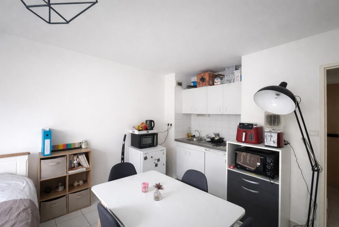 Ce bien se compose : d’une entrée avec grand placard de rangement, d’une agréable pièce de vie lumineuse, d’une kitchenette fonctionnelle et d’une salle d’eau avec douche, lavabo et WC
